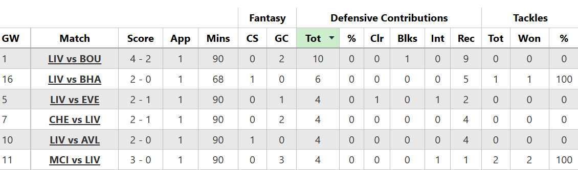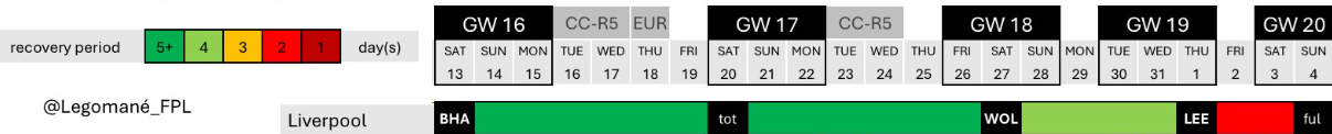 Dia tampak bermain dengan percaya diri, sementara skuad Liverpool sangat tipis, pendekatan dua pemain teratas dan periode pemulihan yang panjang hingga Pekan Pertandingan 20 (terima kasih kepada Legomane untuk grafik di bawah ini) sebaiknya memastikan banyak waktu bermain selama pertandingan menguntungkan di masa depan: