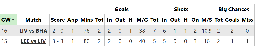 Dua dua gol dalam beberapa pekan pertandingan telah membawanya mencetak tujuh gol dalam 10 penampilan sebagai starter di Premier League. Cukup bagus!