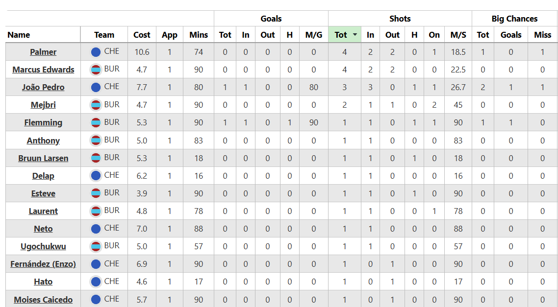 Akhirnya, patut mendapat pujian James Ward-Prowse (£5,6 juta). Pengiriman bola matinya menyebabkan kekacauan bagi Chelsea di akhir pertandingan, menghasilkan assist untuk sundulan Flemming. Awal liga pertama bagi Clarets sudah dekat.
