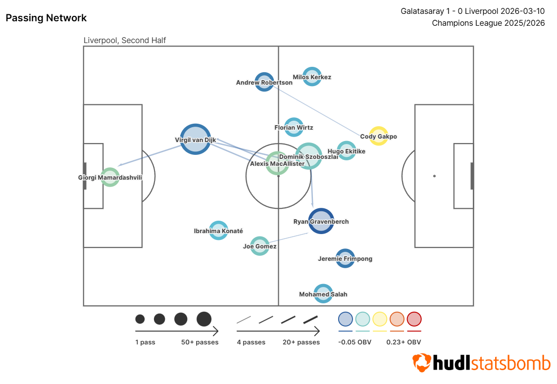Dominik Szoboszlai (£6,9 juta), untuk kesekian kalinya musim ini, adalah pemain The Reds yang tampak mampu menguasai permainan. Dia melakukan tiga tembakan, yang terbaik bersama Liverpool dengan Wirtz, tetapi biasanya semuanya merupakan upaya xG rendah.